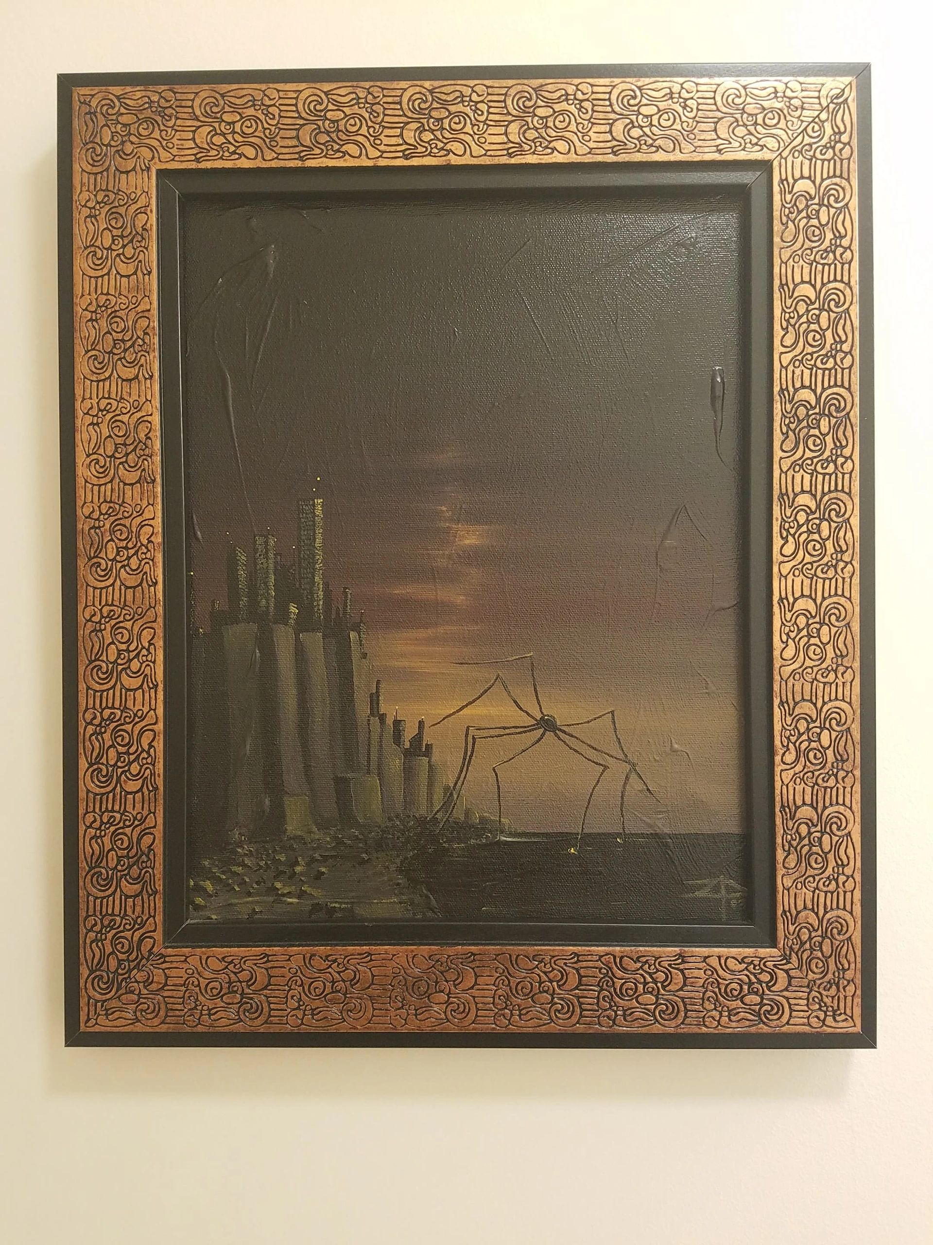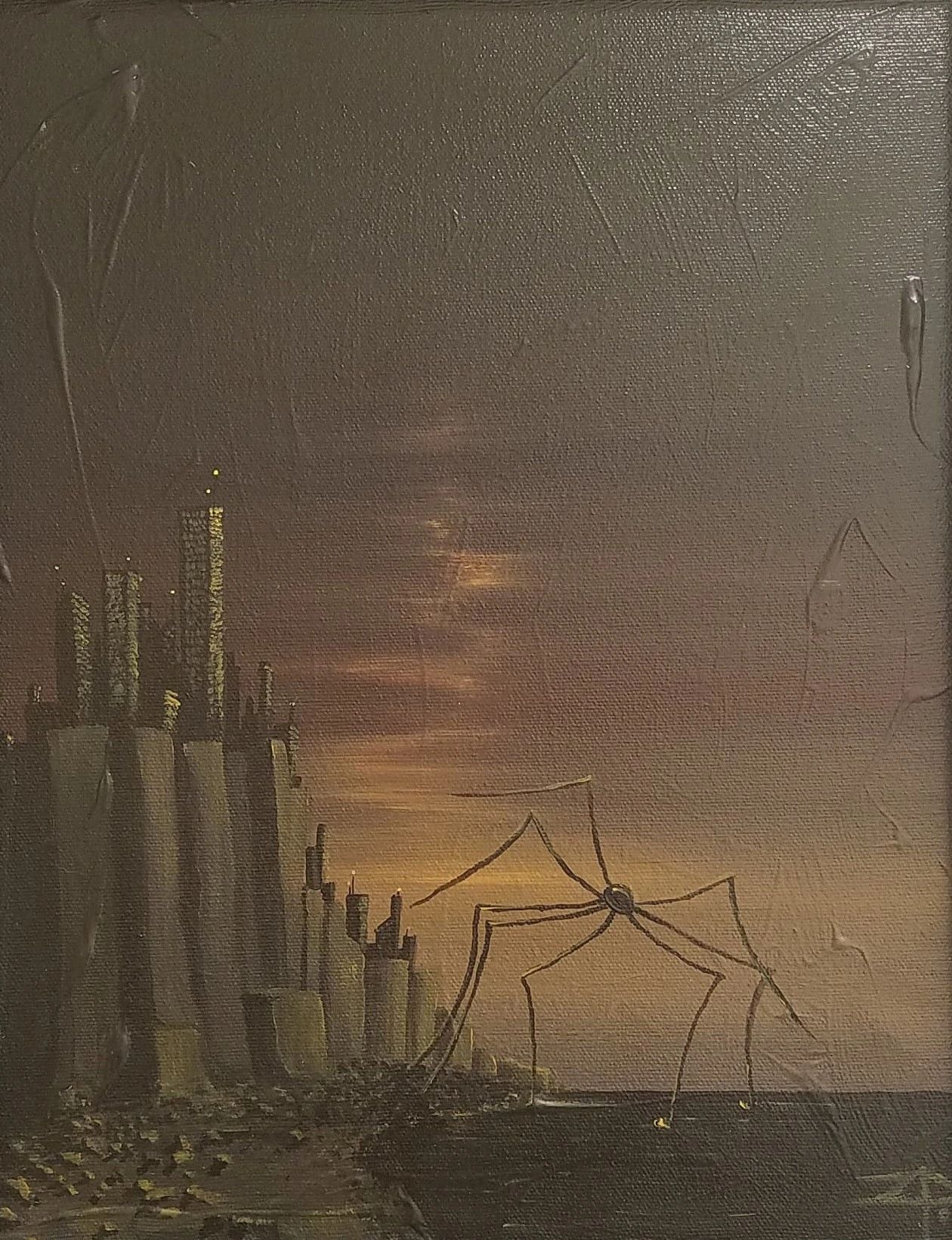 Spider City by Zack Parkar. Acrylic on canvas painted 2003